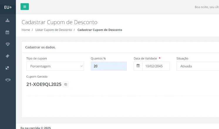 Gere cupons de desconto para alavancar as suas ações promocionais.