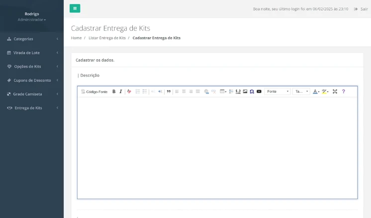Acesso a relatórios de vendas, faturamento e confirmações de presença no evento.