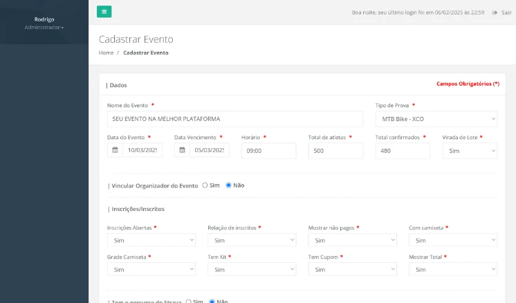 Você informa as datas/valores e o Eunacorrida controla as mudanças de lotes.